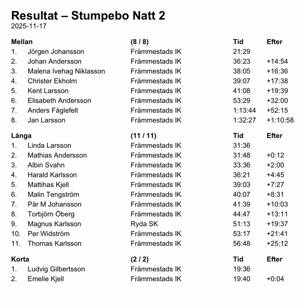 Natt-OL resultat