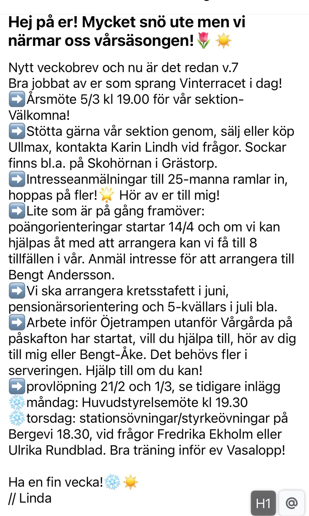 Tillägg veckobrev